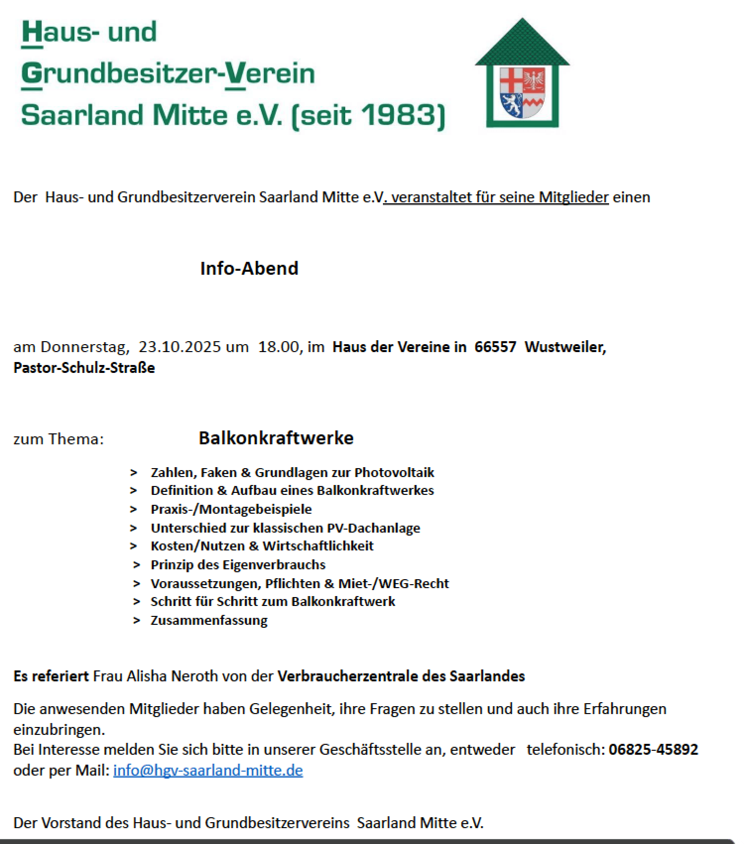 Einladung zur Informationsveranstaltung Balkonkraftwerke